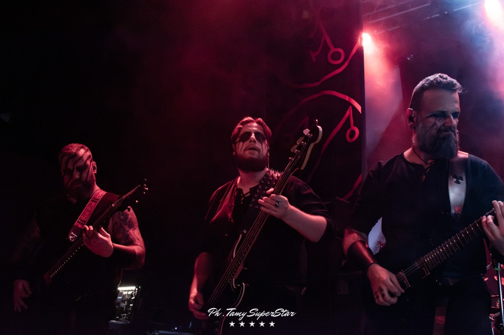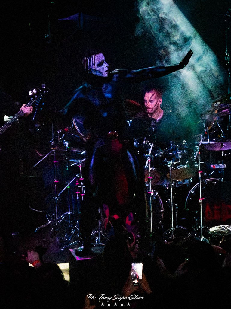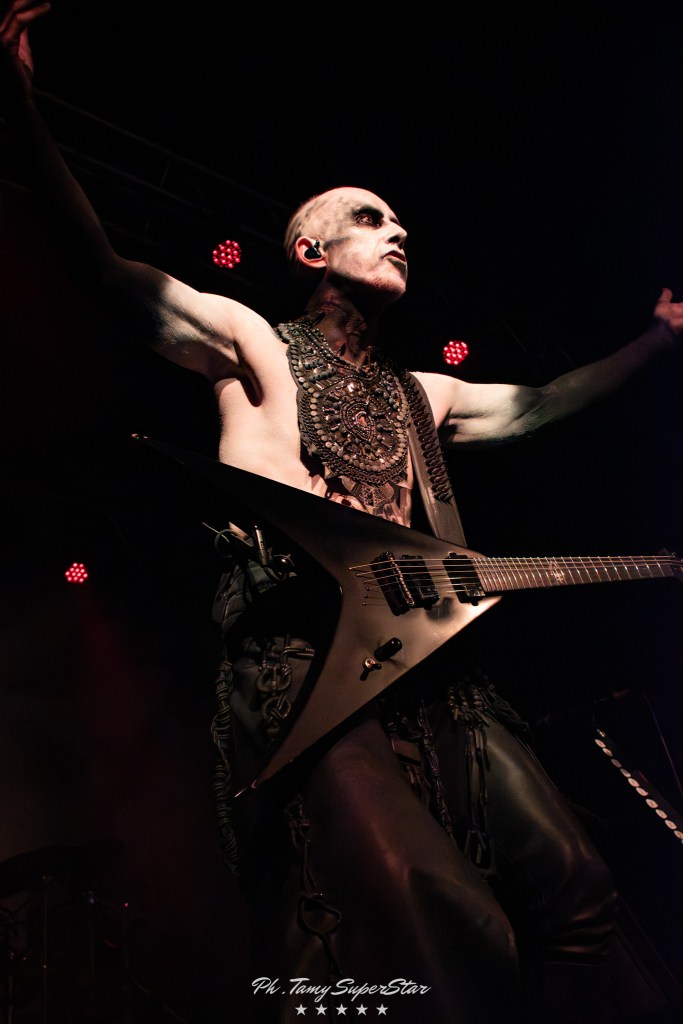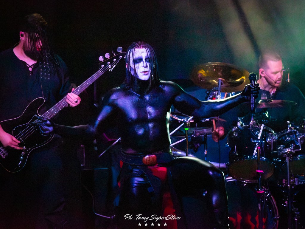 La noche comenzó con la potencia de Nidhögg, encargados de abrir el ritual oscuro que se vivió en El Teatro Flores. Desde el primer acorde, el grupo desplegó una energía feroz que rápidamente conquistó al público. Con una puesta en escena intensa, luces rojas y riffs afilados, lograron encender el ambiente y preparar el terreno para lo que vendría.