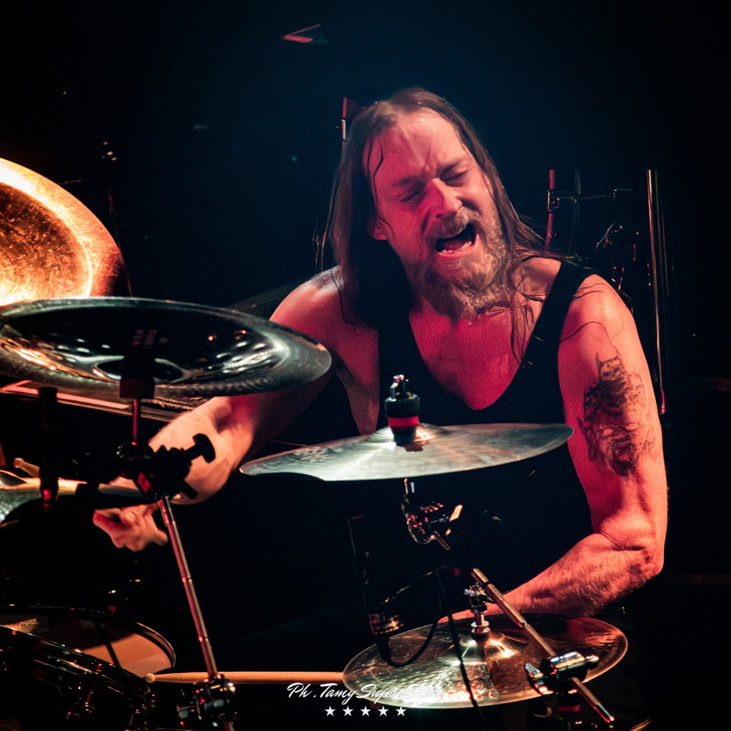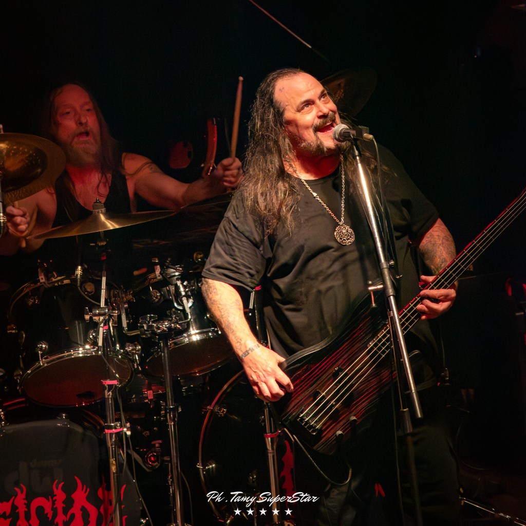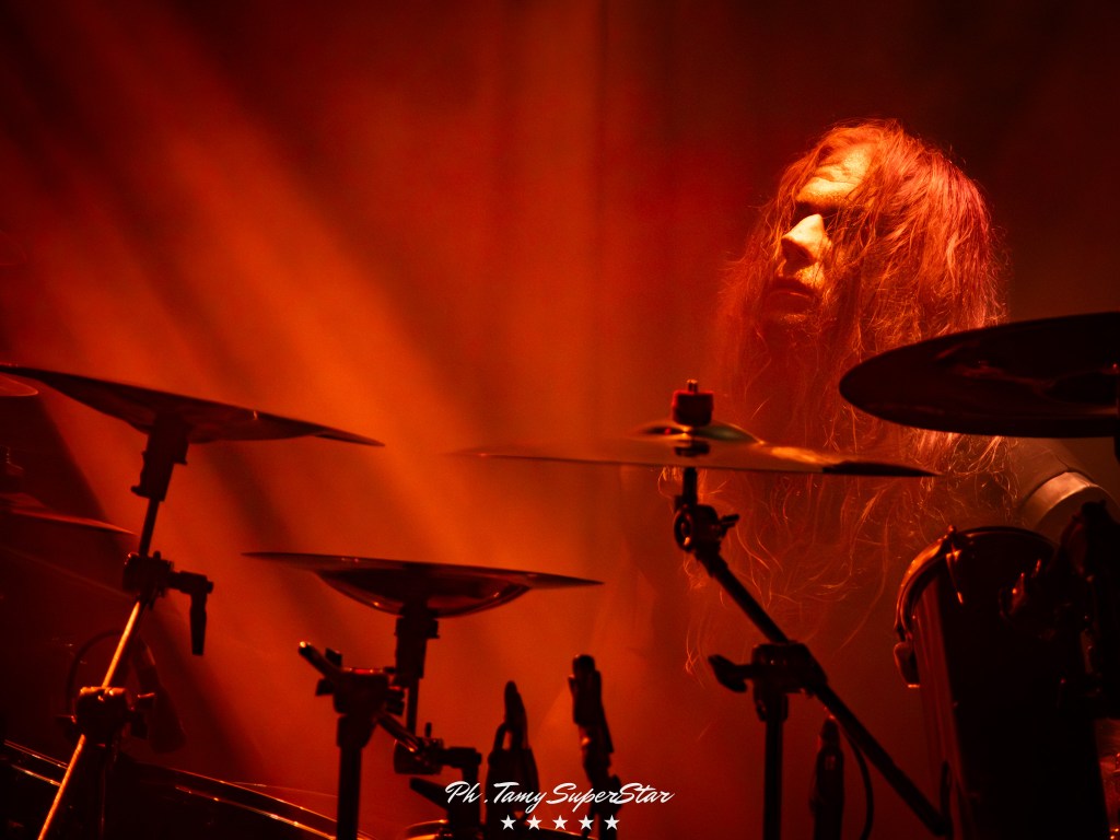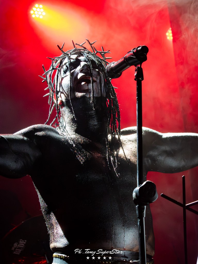 La noche comenzó con la potencia de Nidhögg, encargados de abrir el ritual oscuro que se vivió en El Teatro Flores. Desde el primer acorde, el grupo desplegó una energía feroz que rápidamente conquistó al público. Con una puesta en escena intensa, luces rojas y riffs afilados, lograron encender el ambiente y preparar el terreno para lo que vendría.